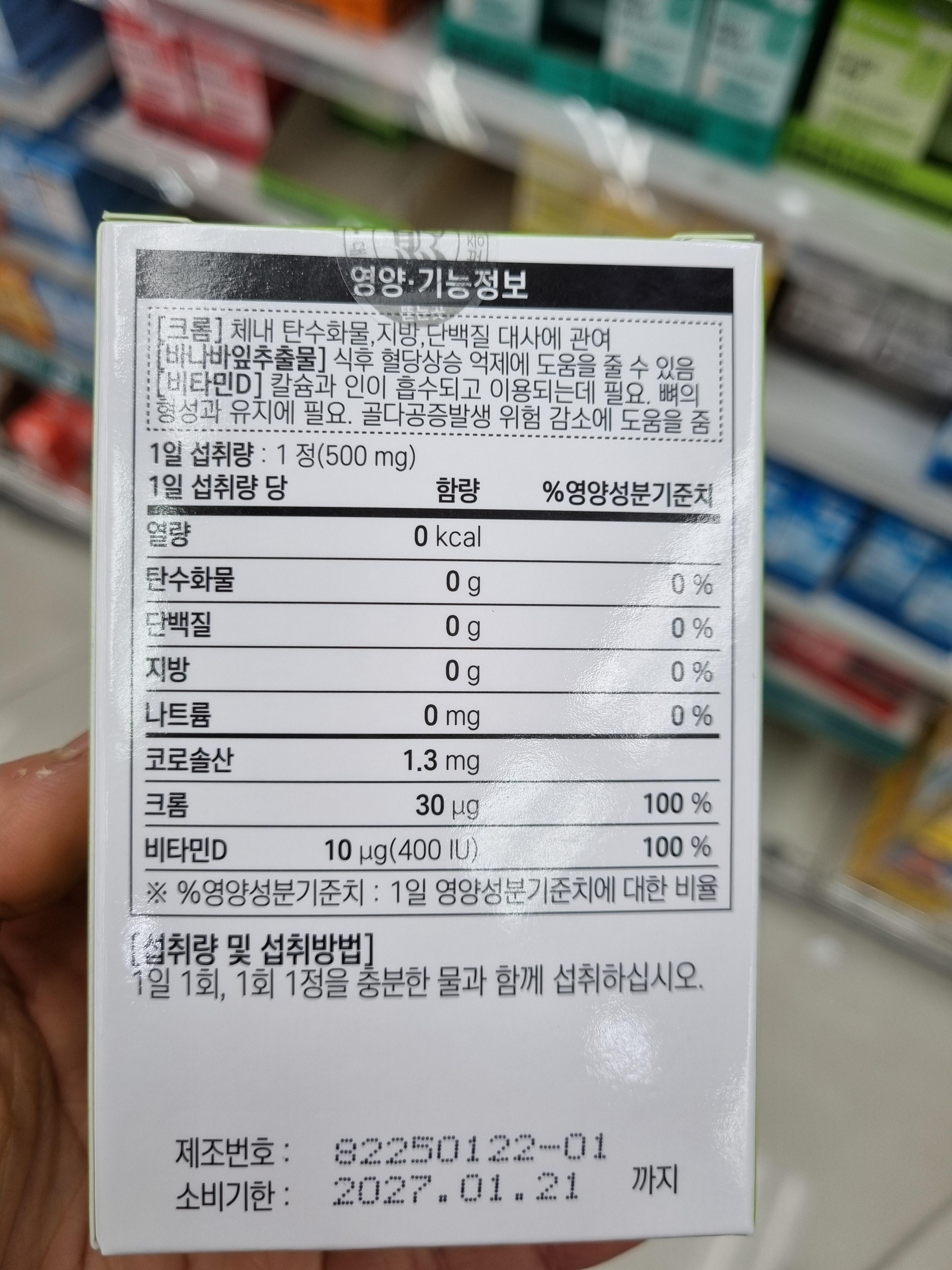 - 크롬 30μg (100%): 혈당 상승 억제 및 대사 조절.