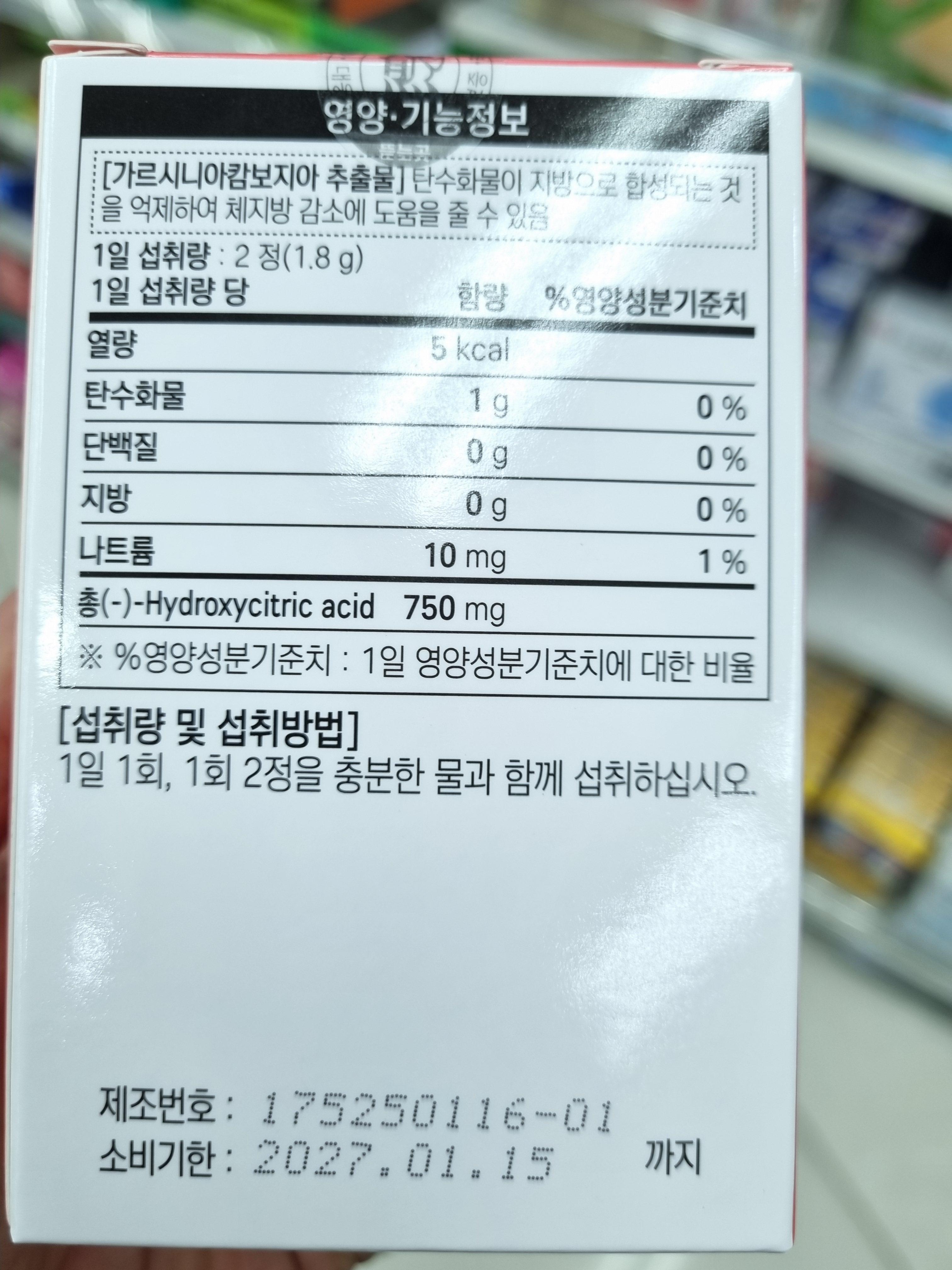 - 가르시니아캄보지아 추출물 (총(-)-Hydroxycitric acid 750mg):