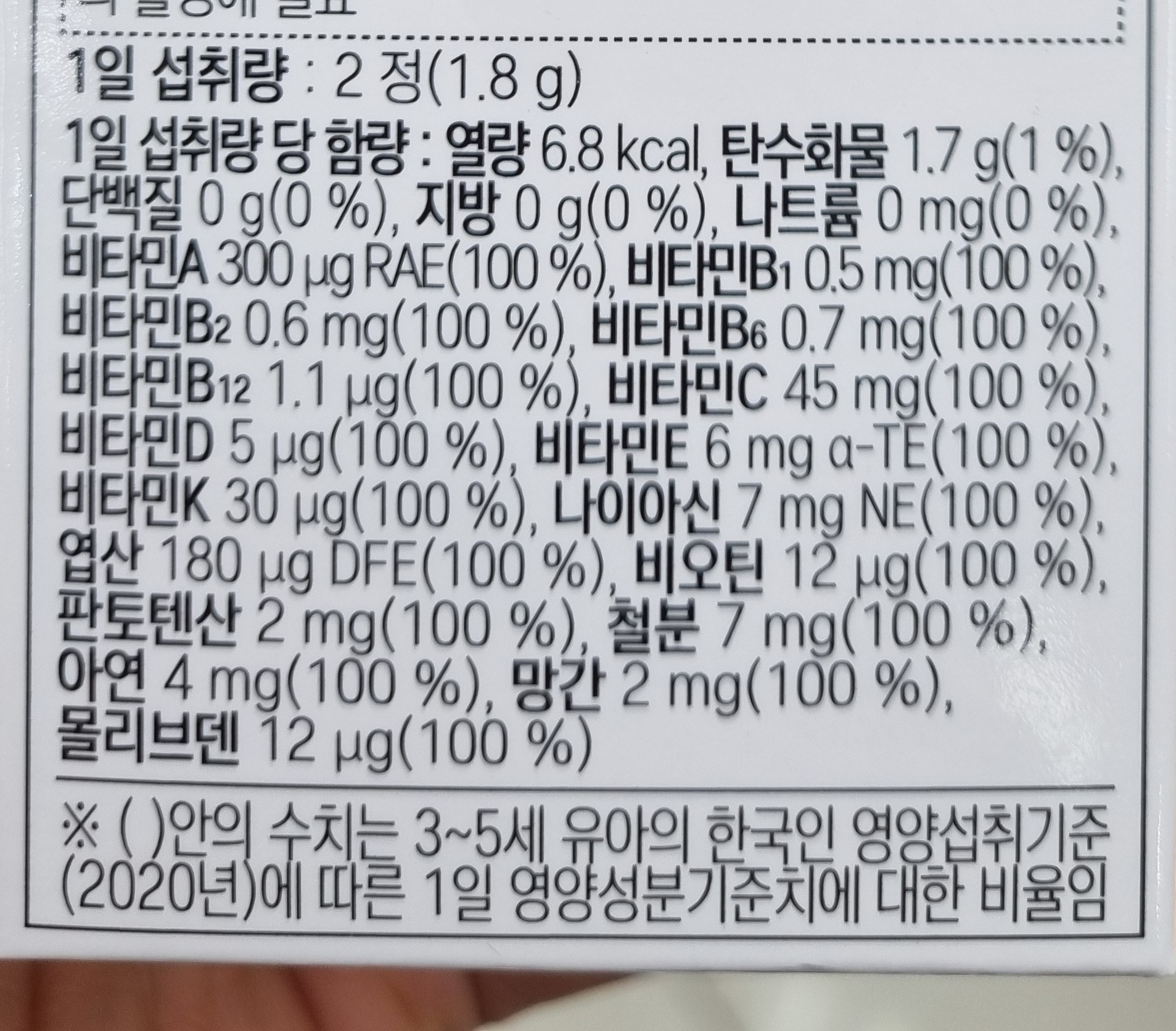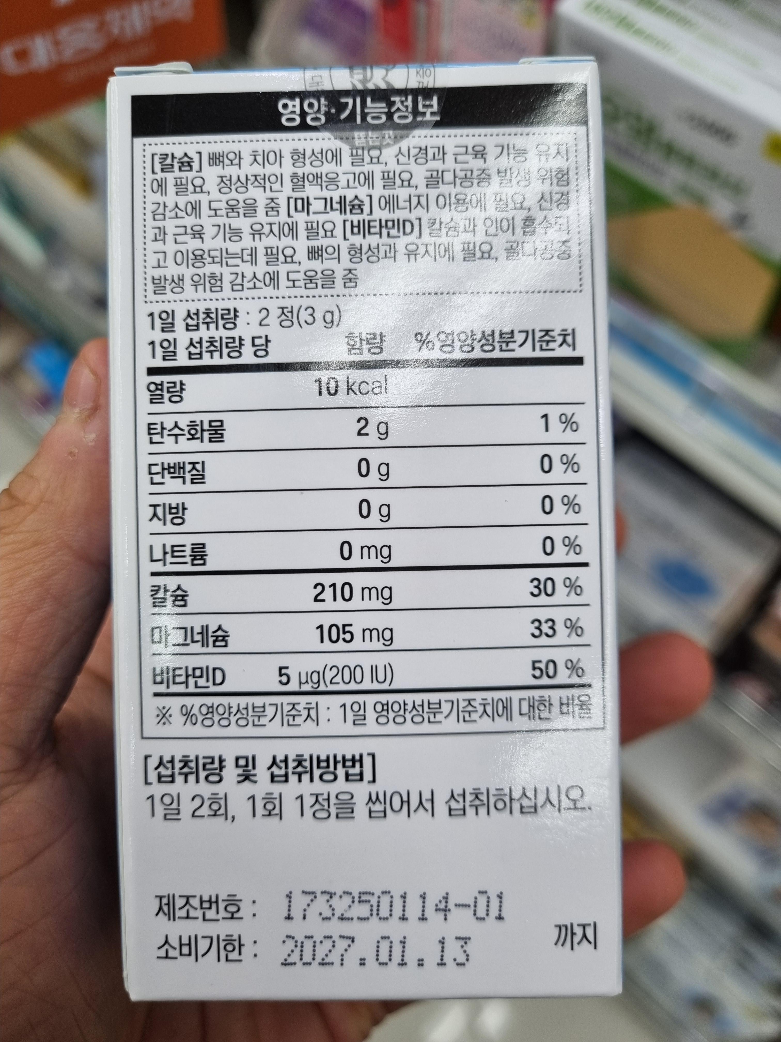 - 비타민D 5μg (200 IU) (50%): 칼슘과 인의 흡수를 돕고, 골다공증 위험 감소에 기여.
