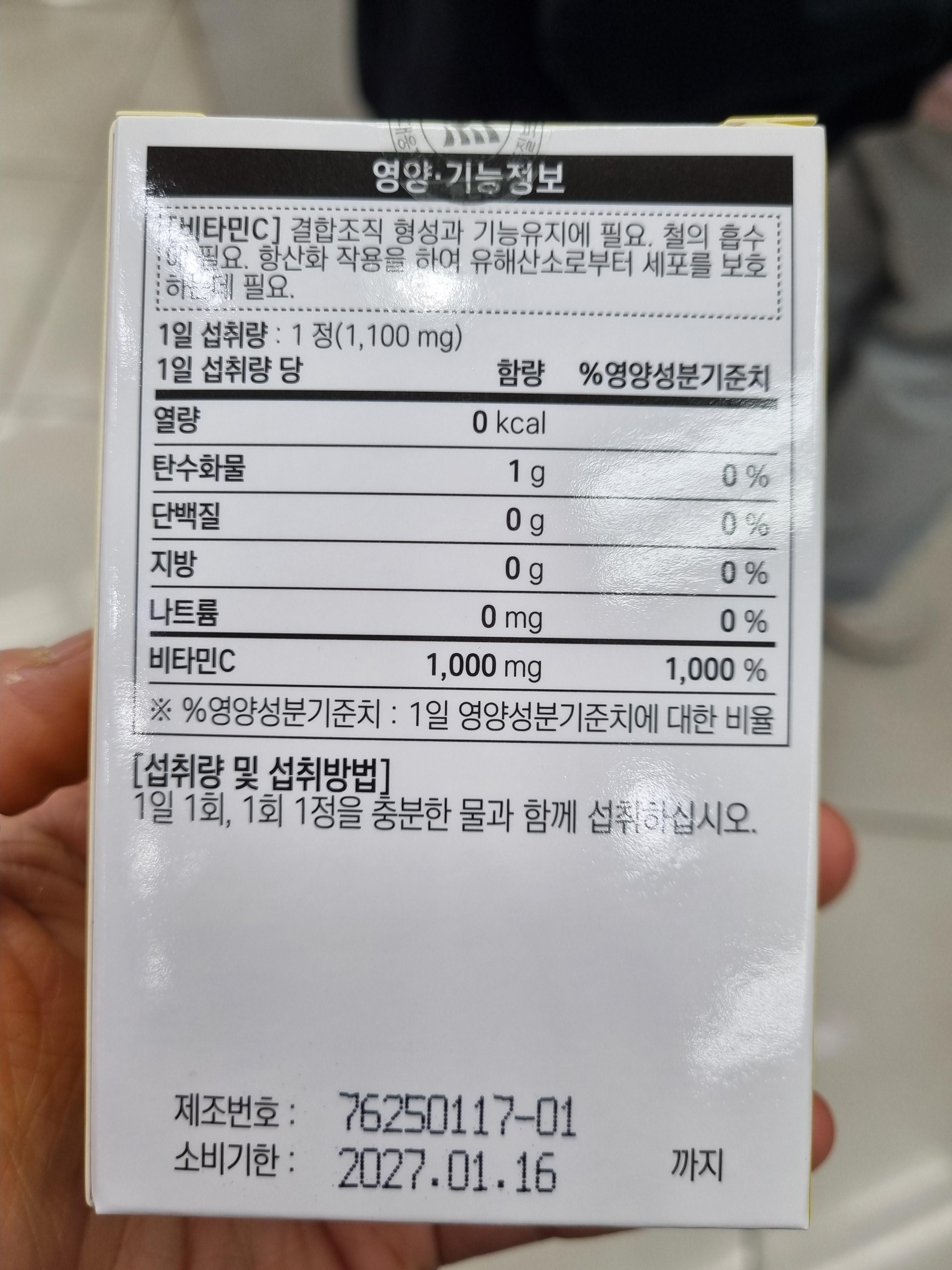 - 비타민C 1,000mg (1,000%): 강력한 항산화 작용으로 유해산소로부터 세포 보호.